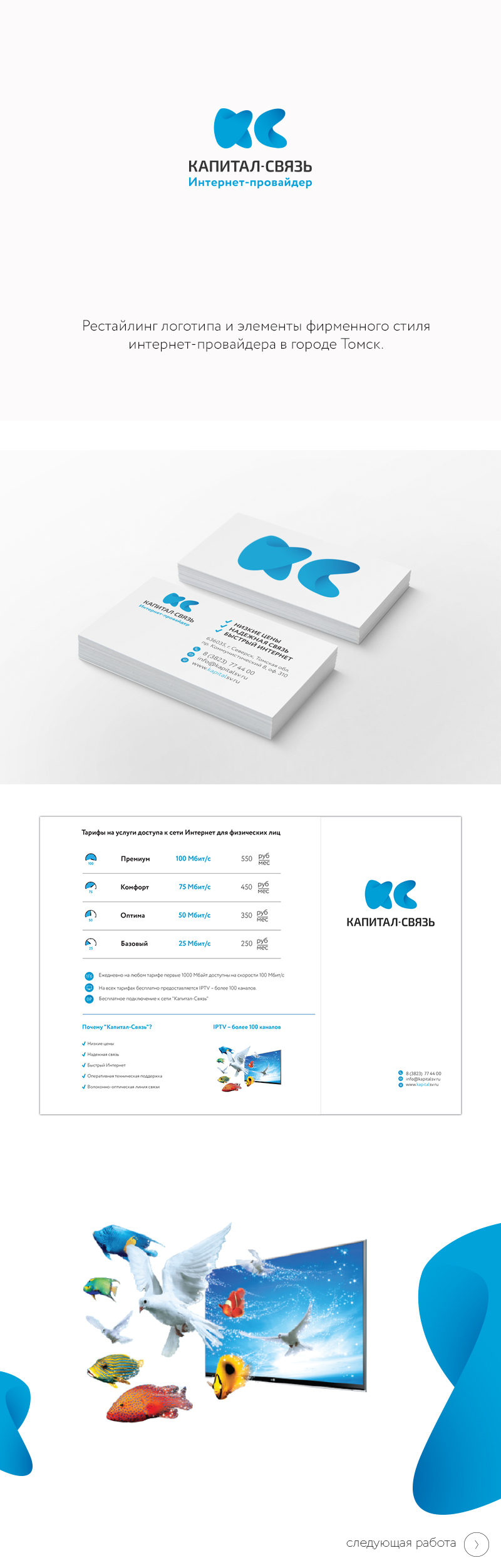 Задание выполнено за 5 дней. Рестайлинг логотипа и элементы фирменного стиля интернет-провайдера в городе Томск.