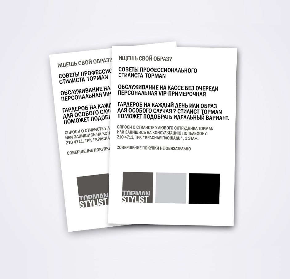 Разработка дизайна открытки стилиста TOPMAN. Для расположения на кассовых блоках и информирования покупателей.