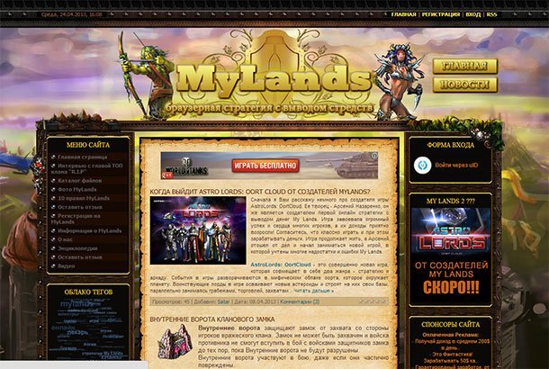 Название: Сайт о браузерной игре MyLands